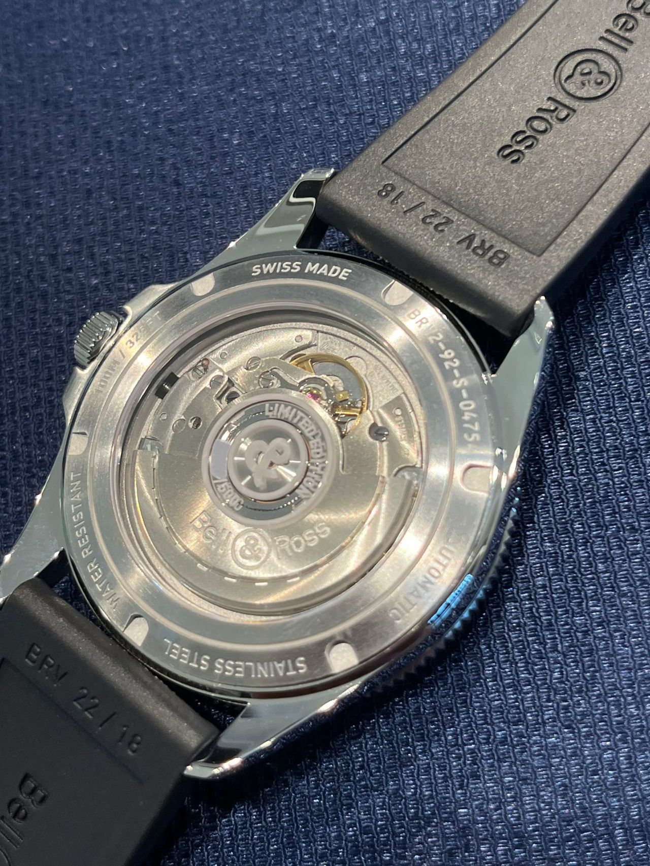 シースルーバックの裏蓋は世界500本限定モデルのシリアルナンバーを見る事が出来ます。