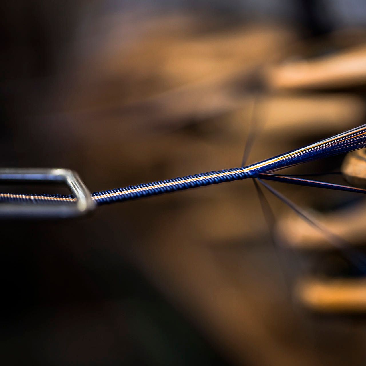 ファブリックストラップはフランスのサンテティエンヌで伝統的な手法を用いて一つ一つ織られており、着用感の良さとファッション性の高さが特徴です。