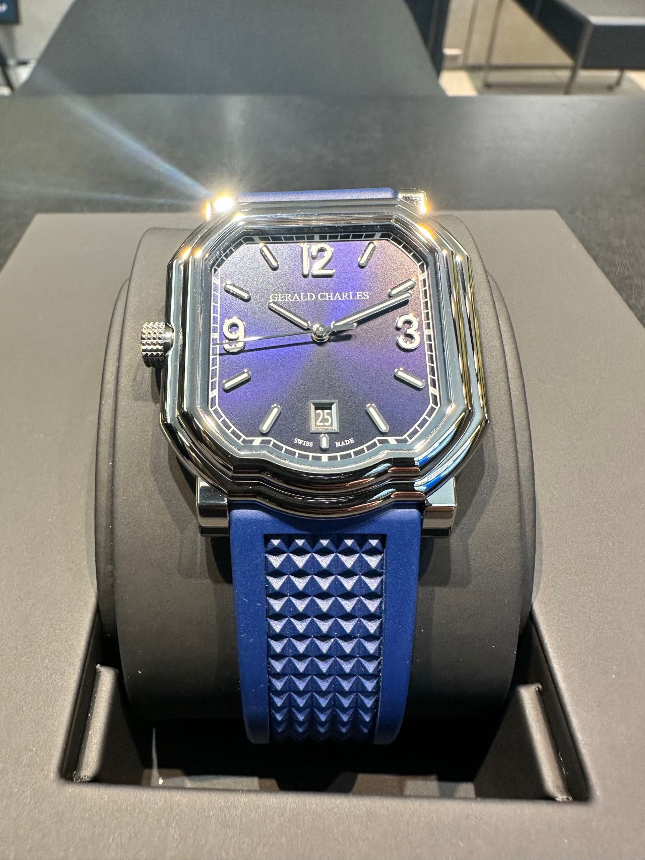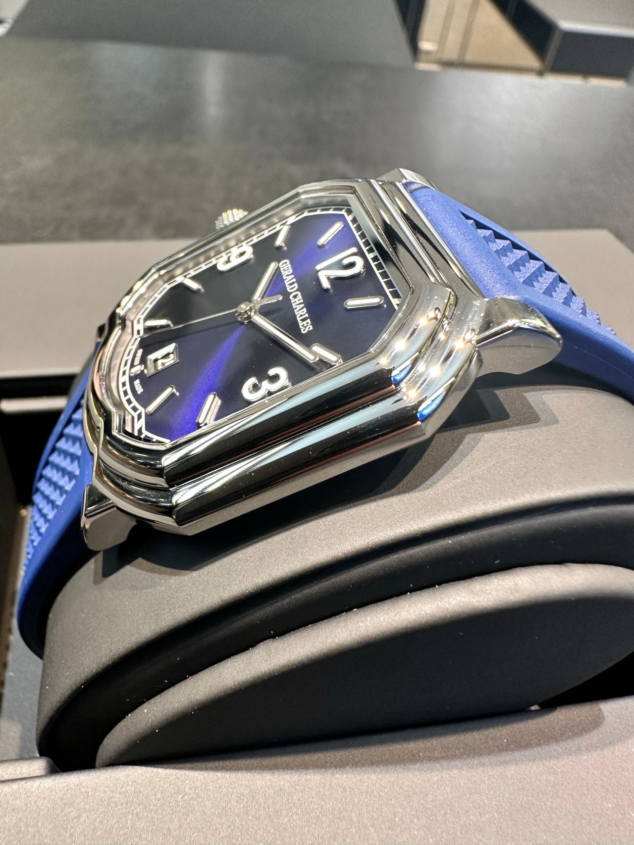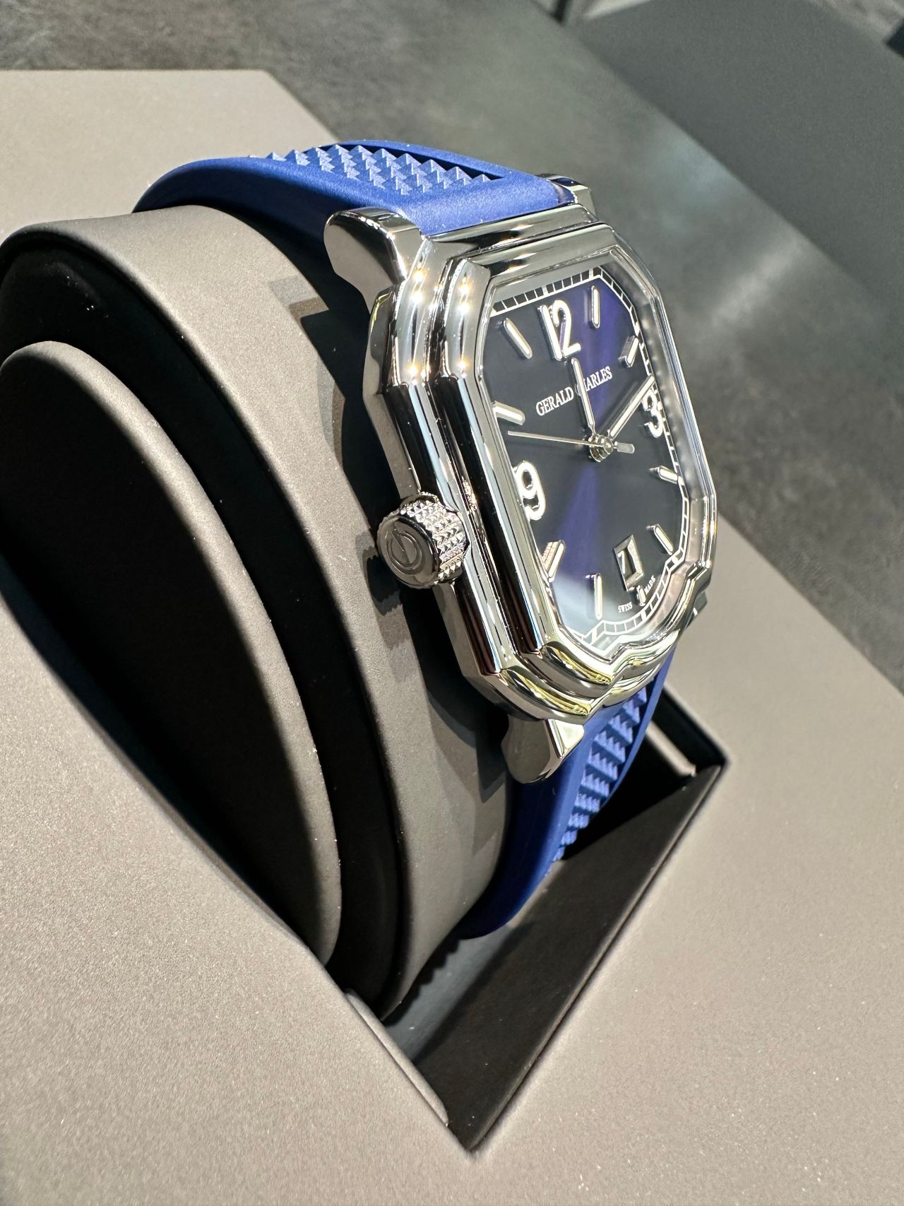 文字盤の深い青に引き込まれそうになる魅力をひしひしと感じます。