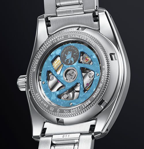 10振動のハイビート・メカニカルムーブメント「キャリバー9S85」には25周年記念ならではの仕様として回転錐にグランドセイコーの獅子のエンブレムがあしらわれ、雲海の上の澄み切った青空を表現しております!
