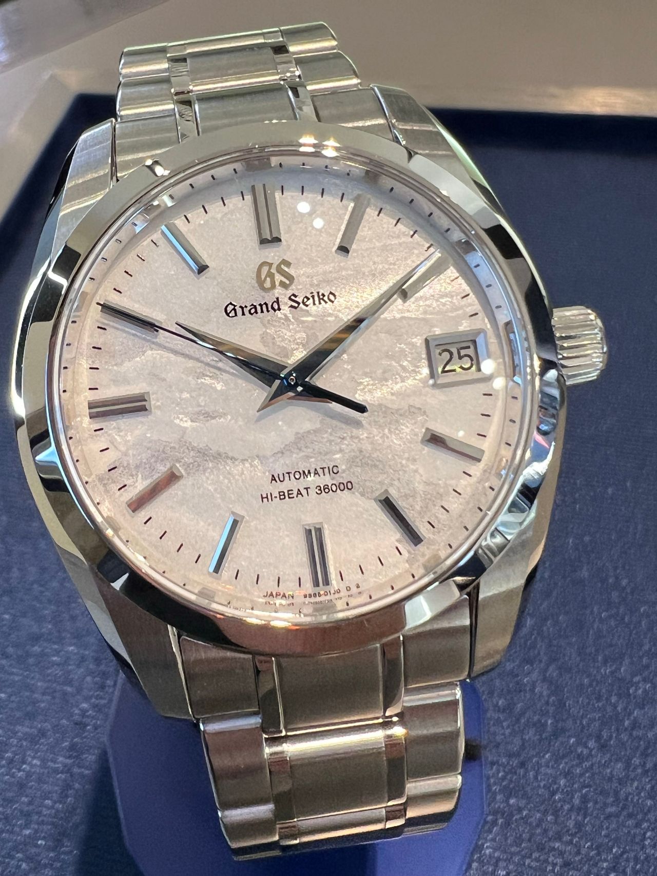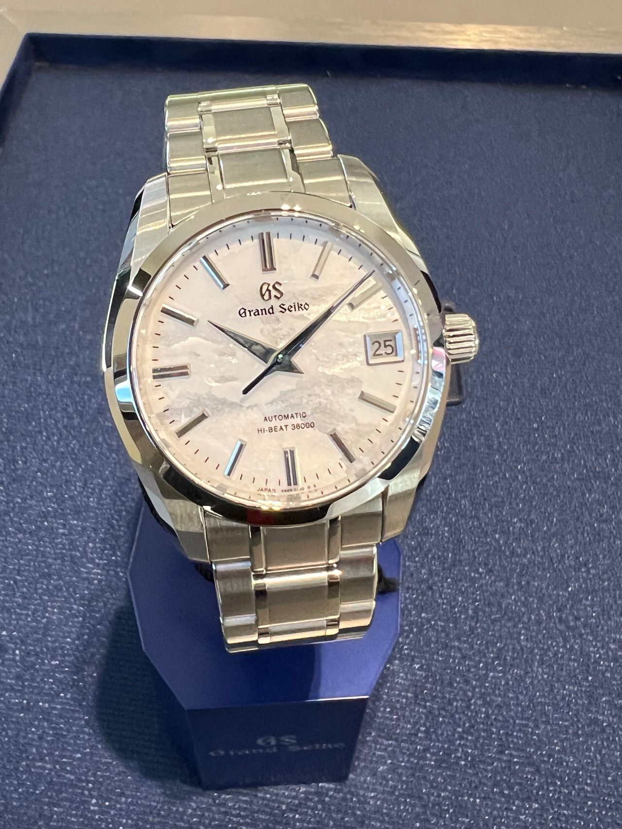 こちらは名前の通りキャリバー9Sシリーズの誕生25周年を記念したモデルで、グランドセイコーのメカニカル時計製作の聖地、岩手県雫石町から見える岩手山の雲海をイメージした文字盤になっております!