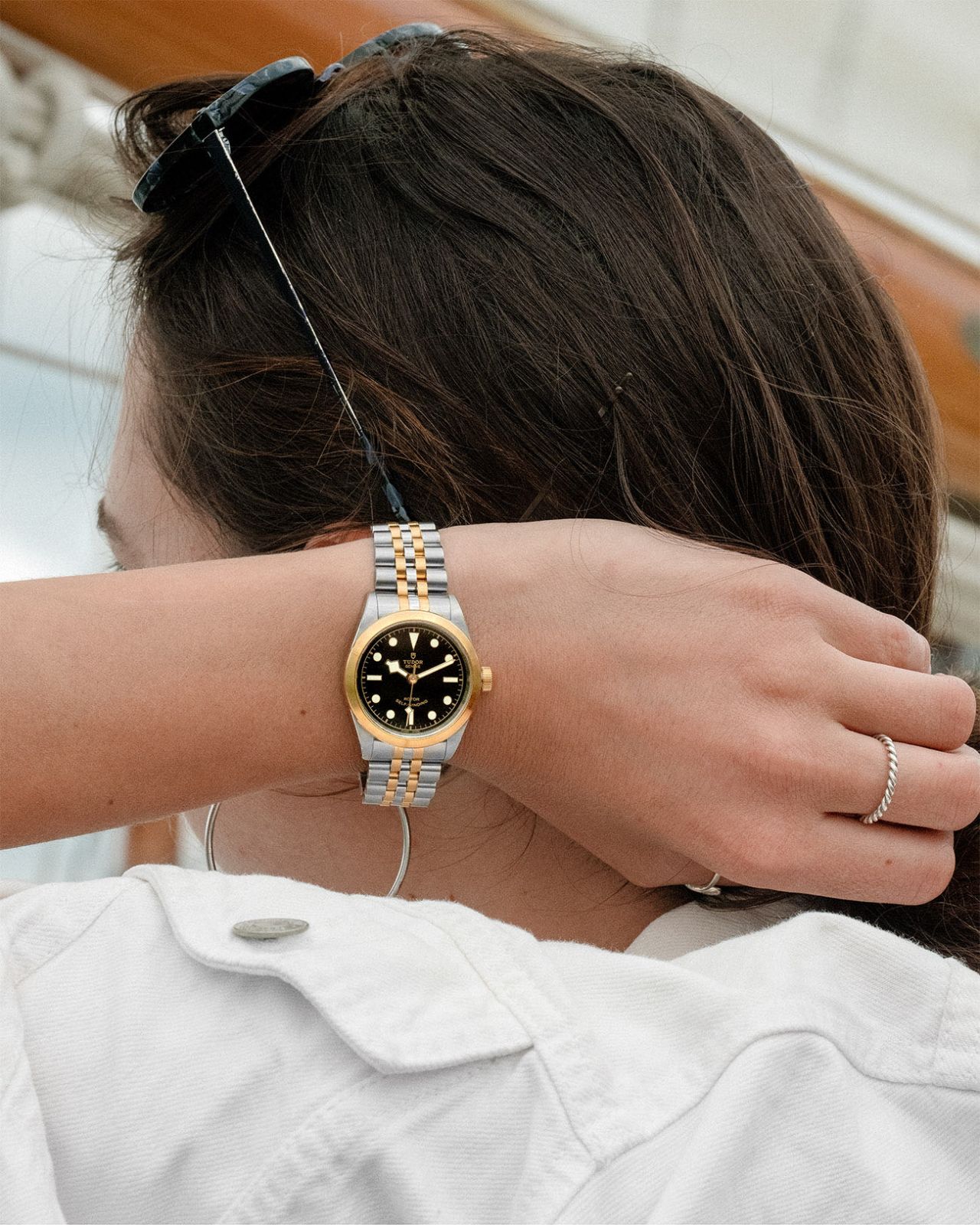 黒文字盤がコンビの色味を上手く引き締めており、オン・オフ問わず使用が可能。