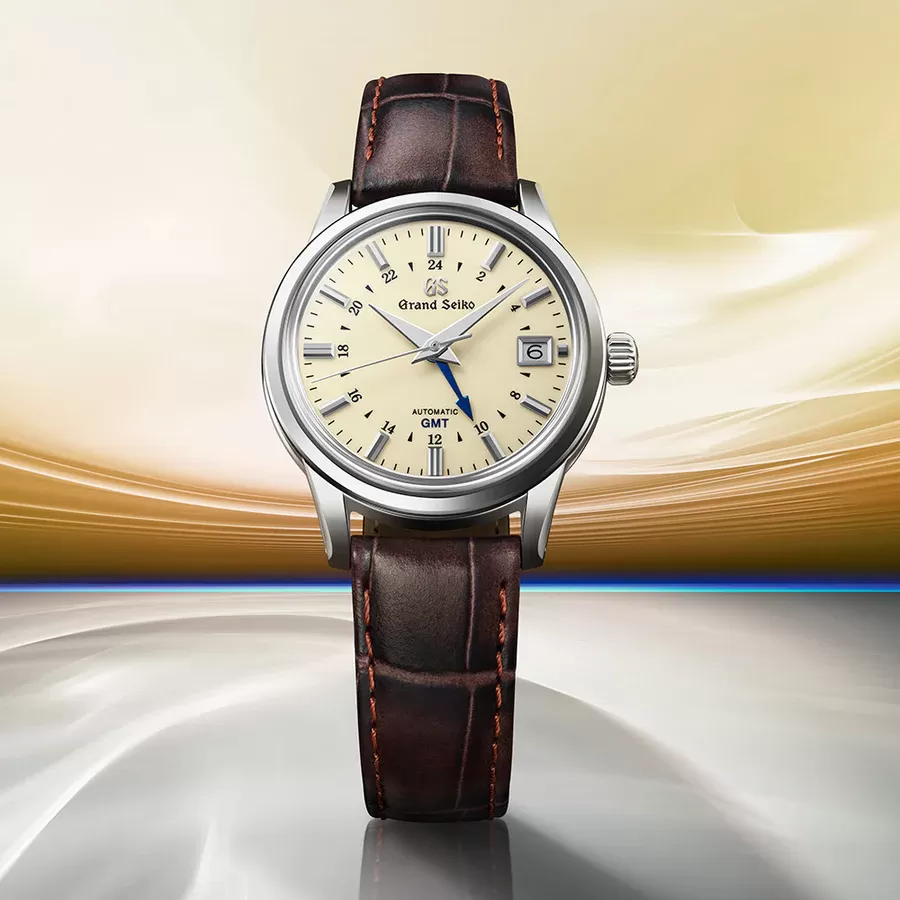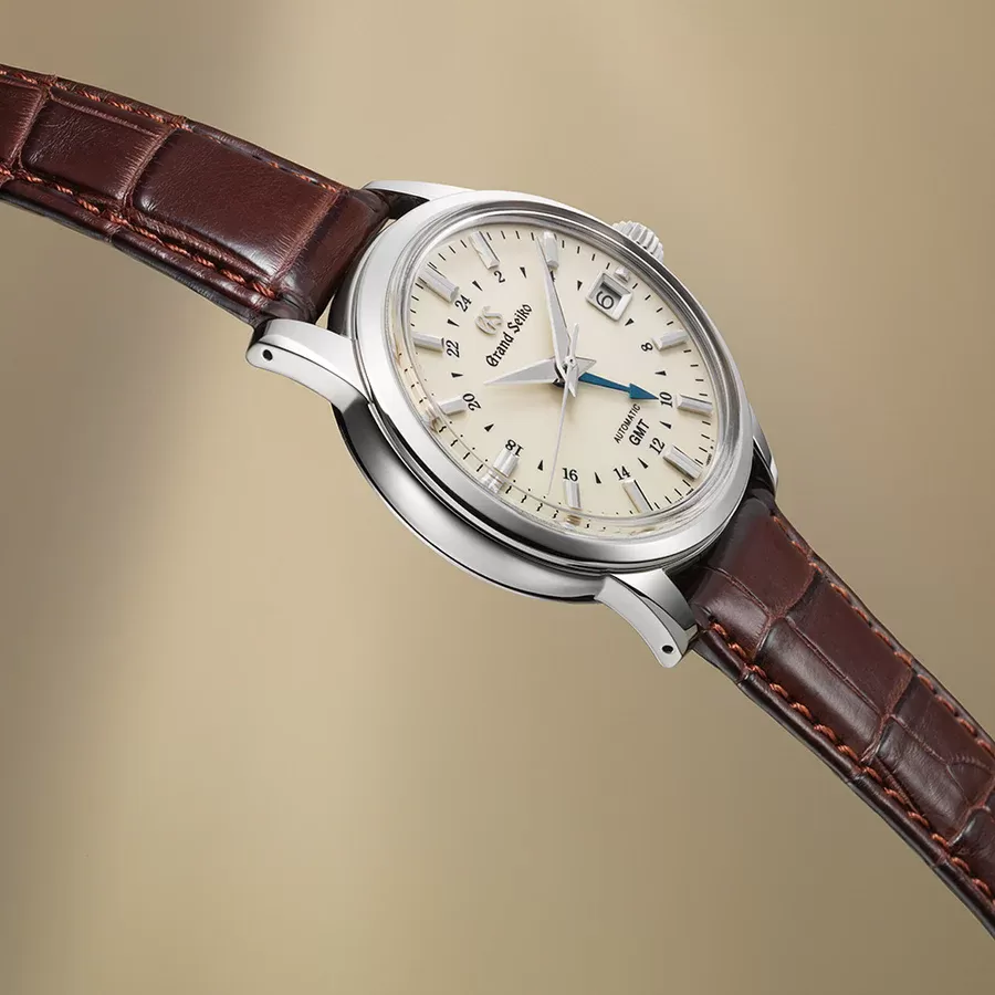 グランドセイコーらしいブルースチールのGMT針がアクセントになっています。