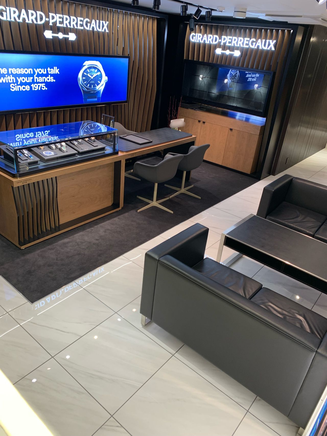 ゆったりとした空間で、GPの時計をご覧いただけます