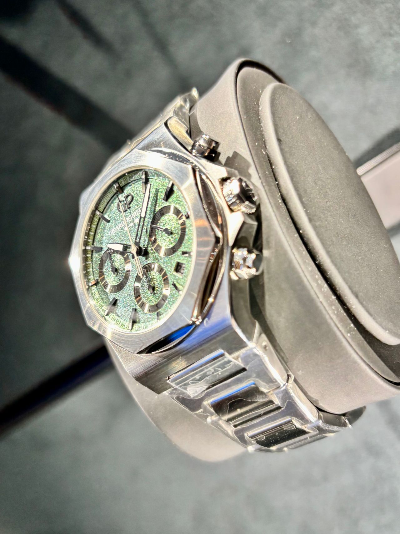 文字盤には自動車用の虹色のペイントを使用