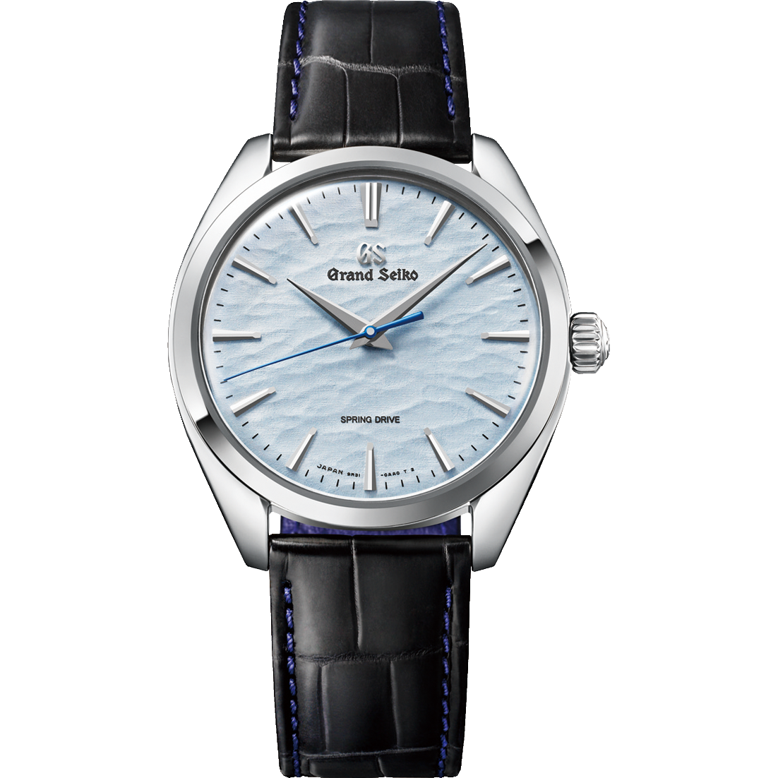 アイスブルーのダイヤルにブルースチールの秒針が映える美しいデザインとなっています