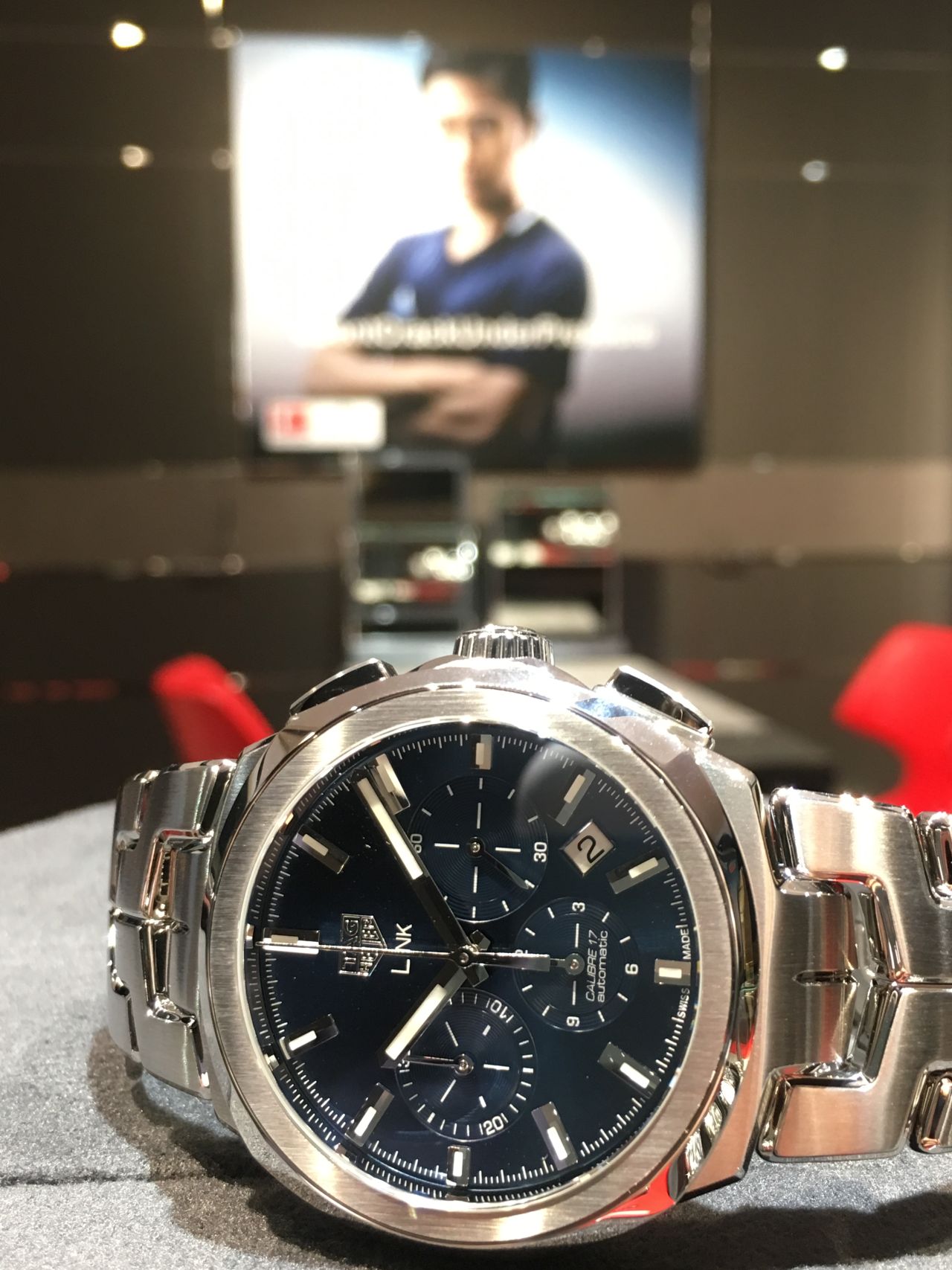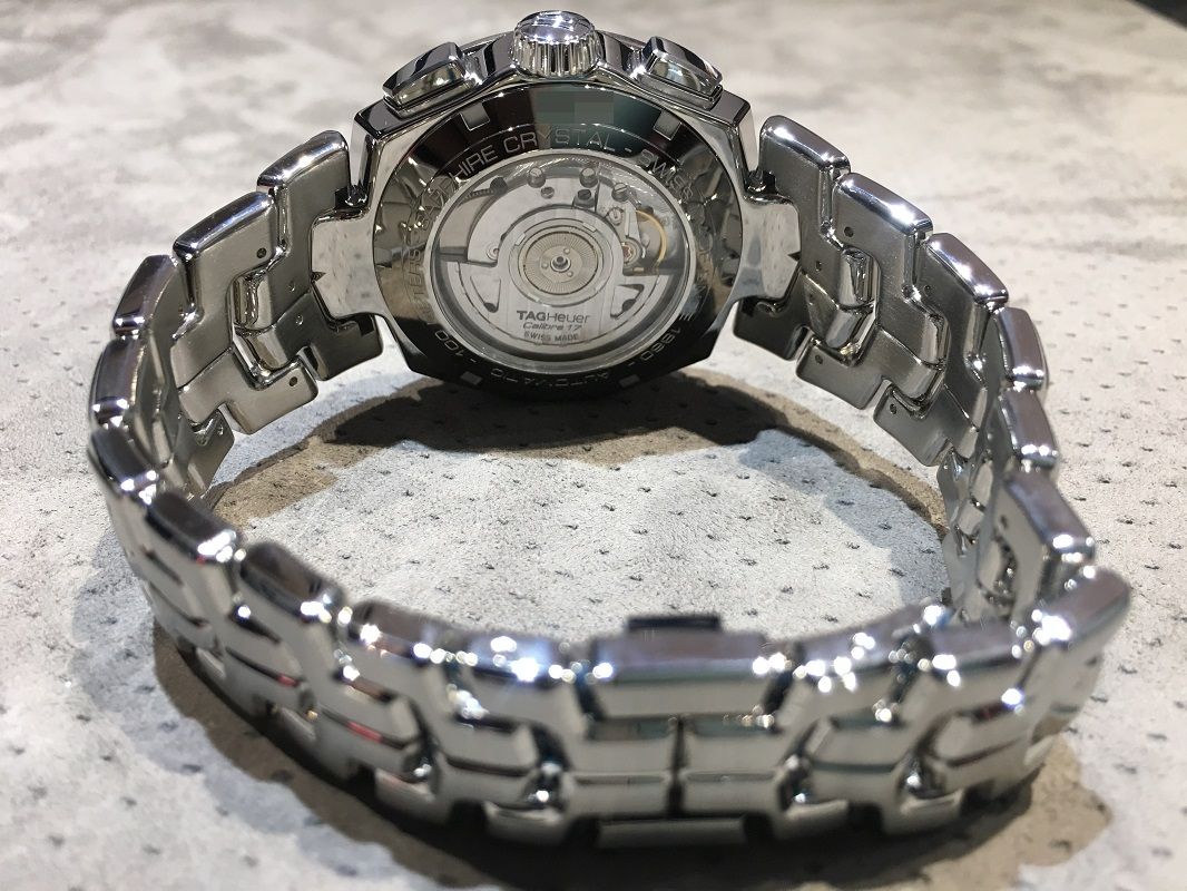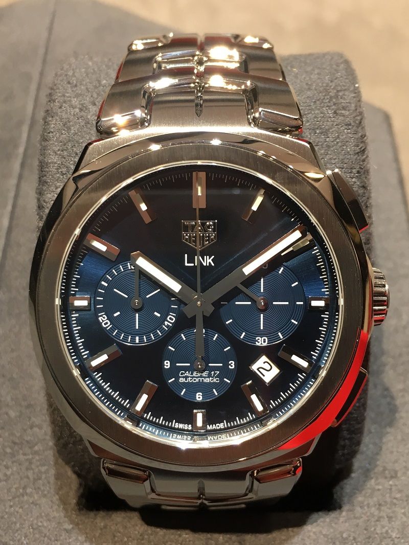 現在のTAGHeuerのアイコンモデル、カレラホイヤー01と比べ、落ち着いた美しいブルー文字盤に、これぞTAGHeuerのS字ブレスが上品に纏まっております!