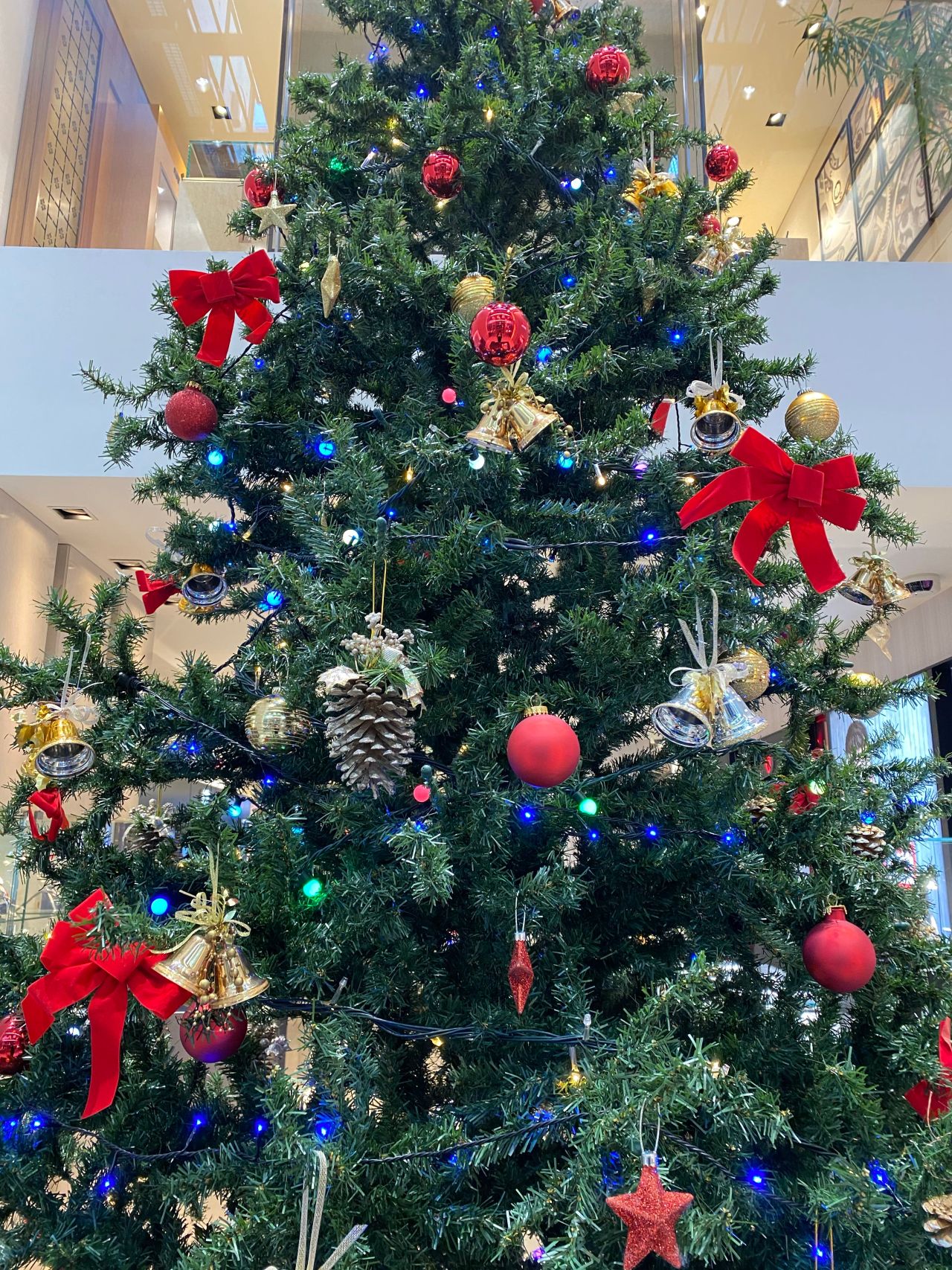 大きなクリスマスツリーを構えて