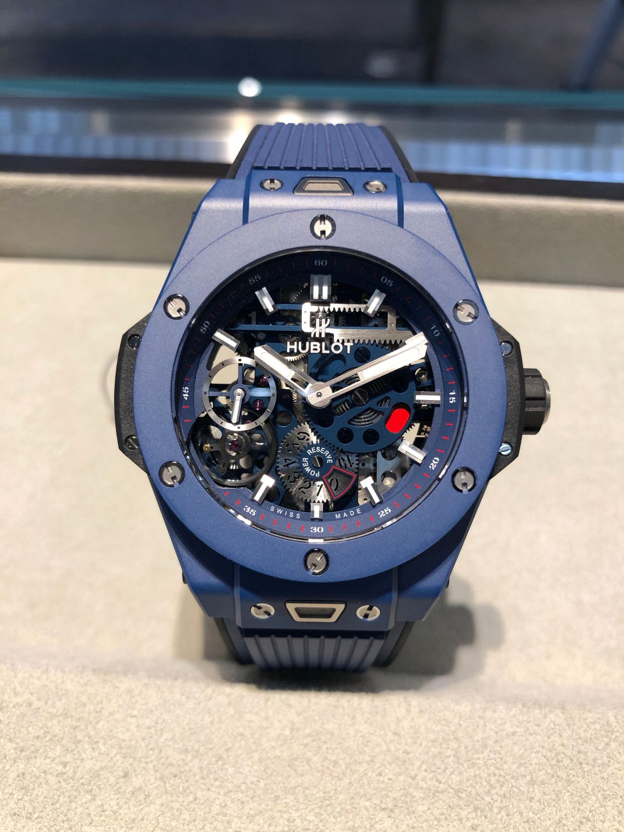こちらのモデルは、10日間のパワーリザーブを擁するムーブメントと、インディゴブルーのセラミックケースが特徴です!