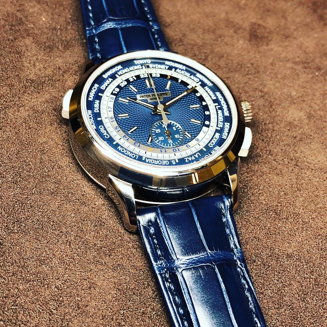 手仕上げによる同心円状のブルーのギヨシェ文字盤がとても綺麗です。