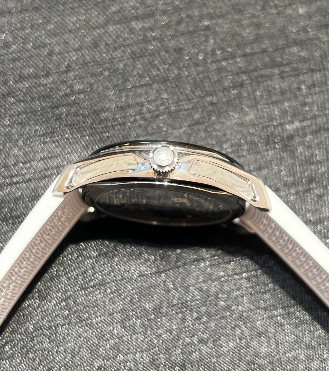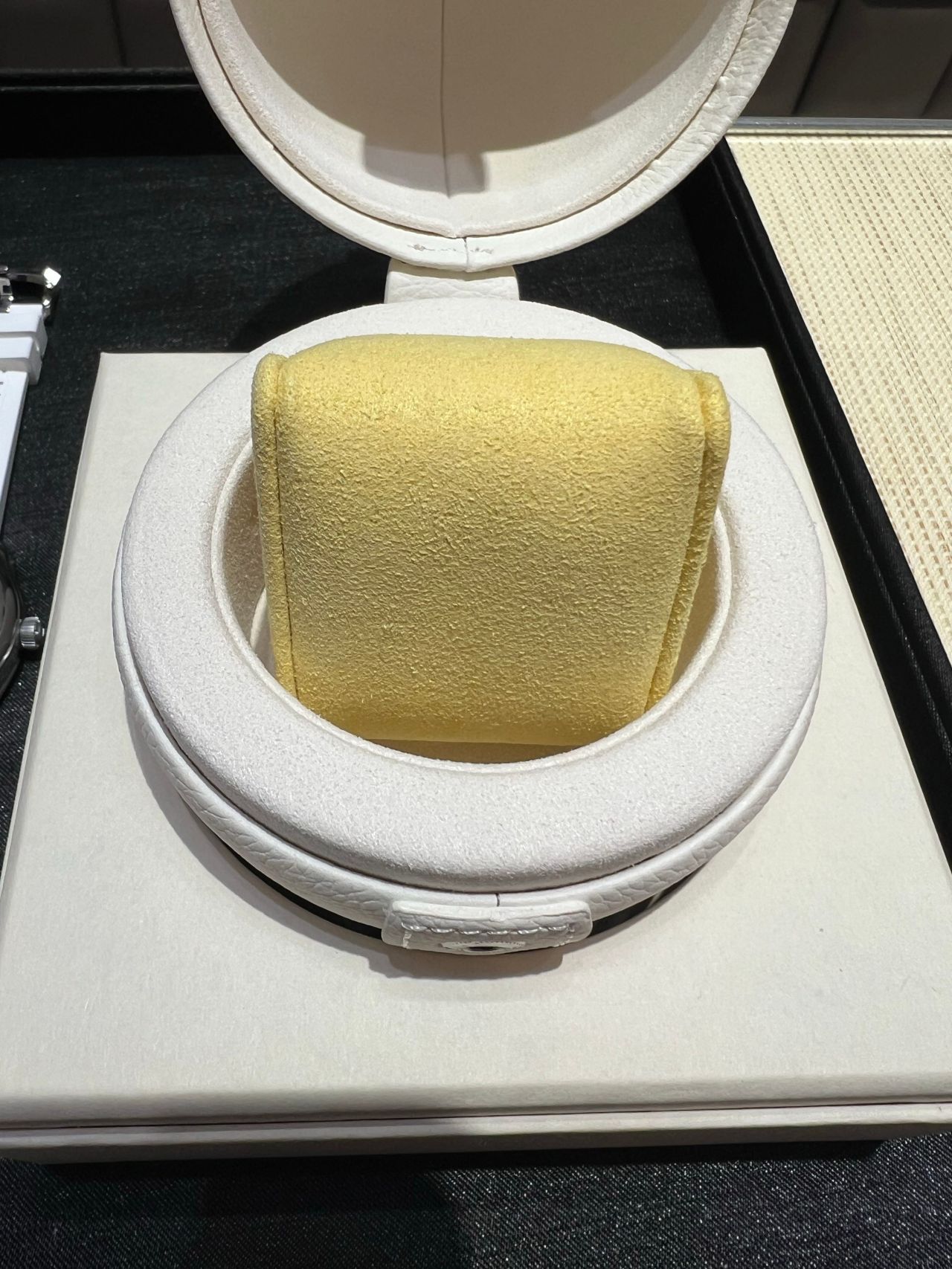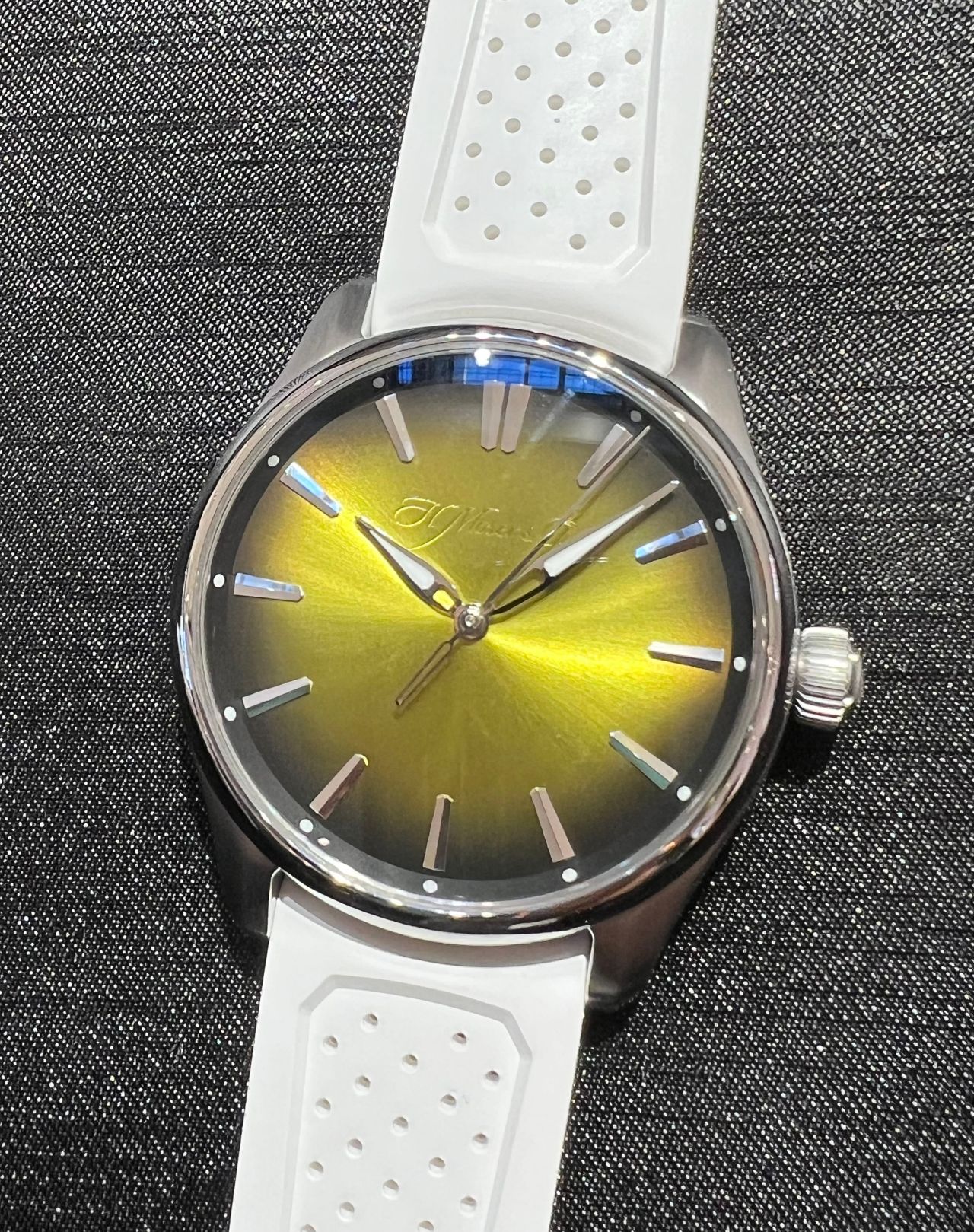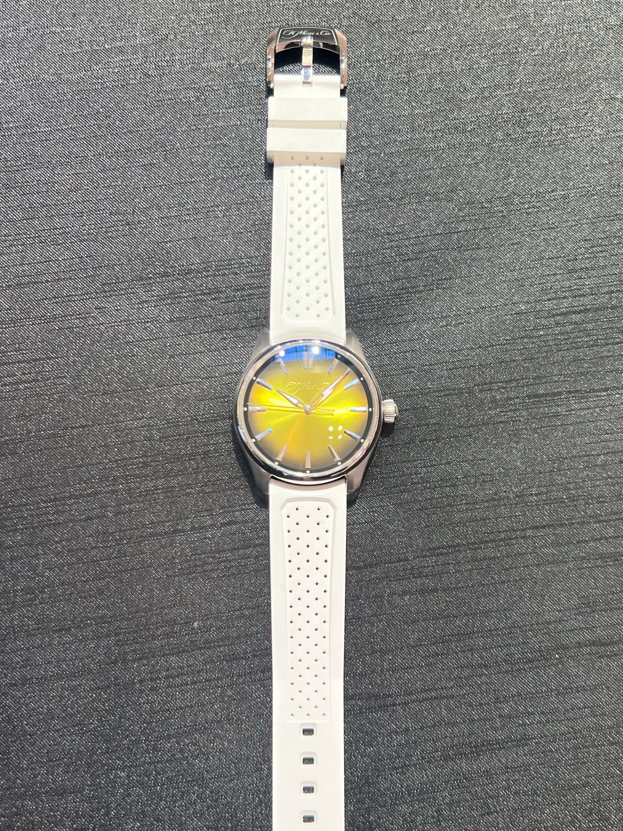 印象的なイエローフュメの文字盤とホワイトのラバーストラップが最大の特徴です!