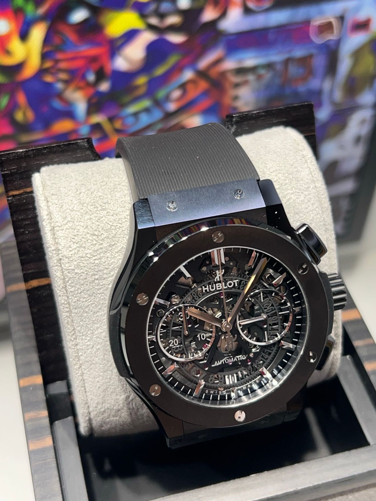 この45mmのクロノグラフはブラックマジックと呼ばれるブラックのセラミックケースモデルで艶の有る高級感に溢れた仕上がりです!
